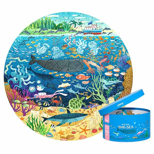 A circular puzzle encourages kids to think out of the box. Let your children’s imagination take flight with the Mideer Dive Into The Sea – Circular Puzzle where you take a ride in the sea and your child can imagine being a diver. Each piece is extra thick, 2.5mm, making them durable and easy to handle for kids of all ages. Includes a 150-piece puzzle that will result in a round floor puzzle. It comes in a beautiful cylindrical box for gifting and easy storage.