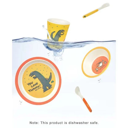 This tableware set from Mideer is made from food-grade bamboo and corn flour making it safer for kids compared to standard utensils. This set of 5 is dishwasher safe for added convenience and easy clean-up. The curve-shaped bowl makes it easier for your little one to scoop food.
