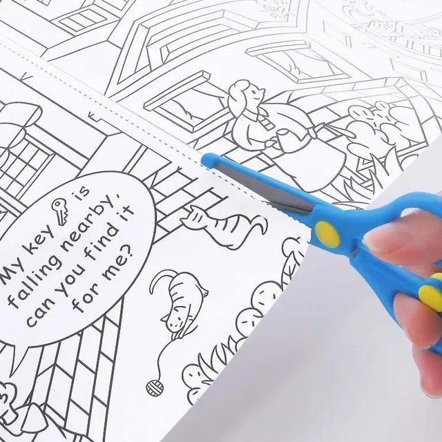 10 meters city themed colouring scroll brings rich plot and interesting scenes for children to explore more fun and knowledge during drawing. Patterns are different in every inch. Heavyweight paper that no bleeding issues. Soybean ink printing, odorless & safe. 500+ city elements reinforce the general knowledge of life cognition.