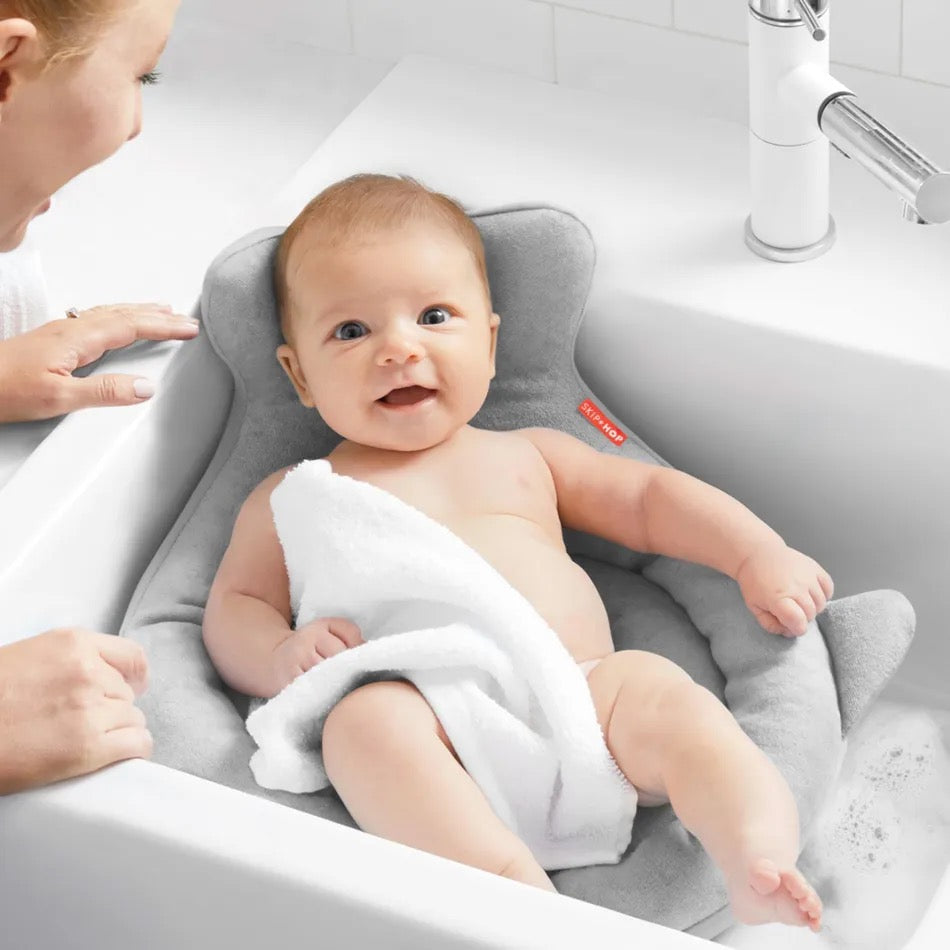 Perfectly sized to cradle newborns and infants, our plush and supportive sink bather is a must-have for your baby’s first baths. With a soft terry surface and a padded whale tail to protect baby’s head, the cushioned design fits in bathroom and kitchen sinks to cradle infants for comfy and convenient bathing. The mesh bottom drains water quickly and the Velcro® strap makes it easy to hang dry.