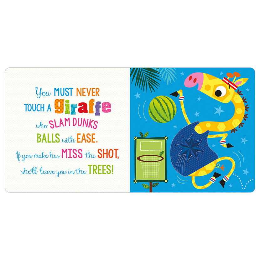 Never touch a panda . . . unless it’s in this book! This new addition to the Never Touch a…. series features five sporty animals, and is accompanied by a silly rhyme that is sure to make little ones laugh! Children will love touching the bumpy silicone touches on every page, and Stuart Lynch’s funny illustrations are sure to make this a hit with all families.
