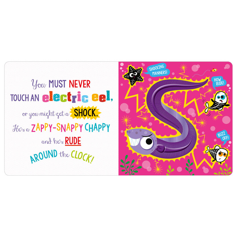 You must never touch a piranha . . . unless it’s in this book! This hilarious, underwater-themed touch-and-feel book features jellyfish, electric eels and more! Each page has incredible silicone touches, perfect for little ones to explore. The next in our bestselling Never Touch range, this witty board book will entertain the whole family. UNDERWATER THEMED BOARD BOOK WITH SILICONE TOUCHES