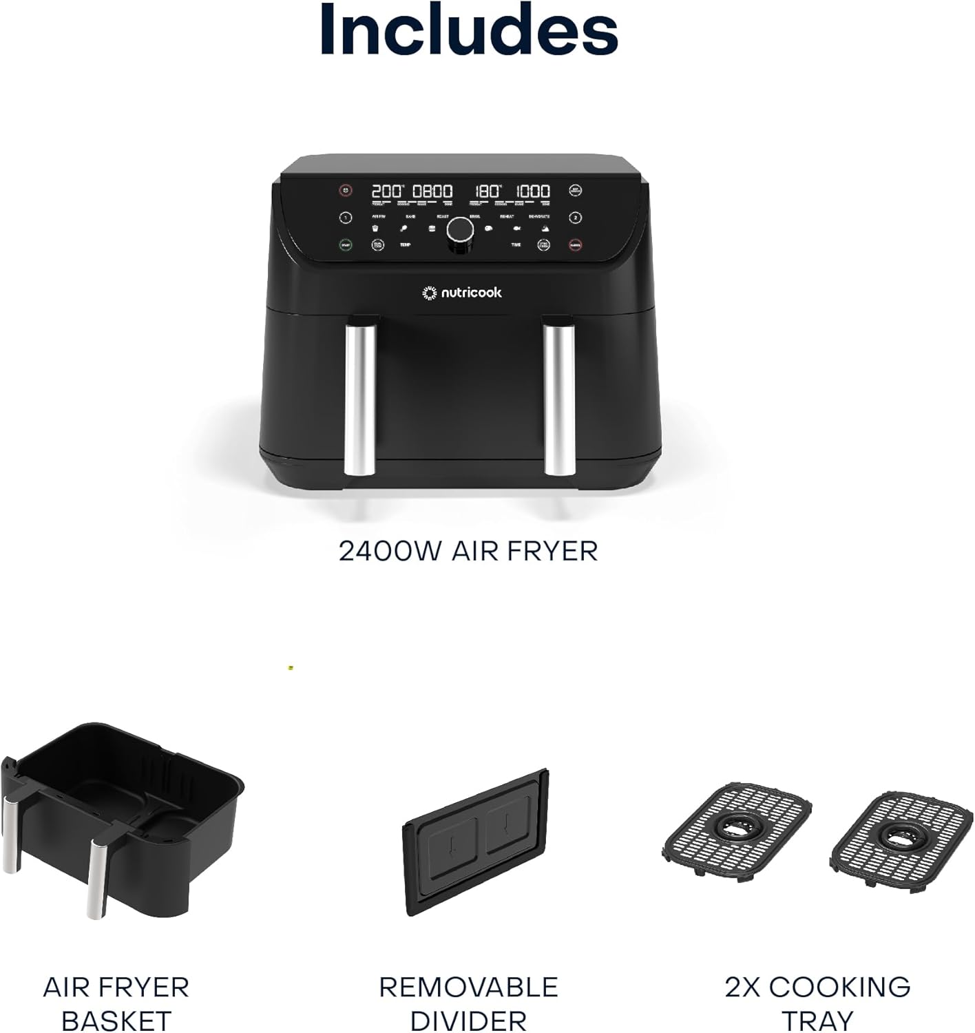The non-stick basket and cooking tray are PFOA/BFA-free and dishwasher safe.