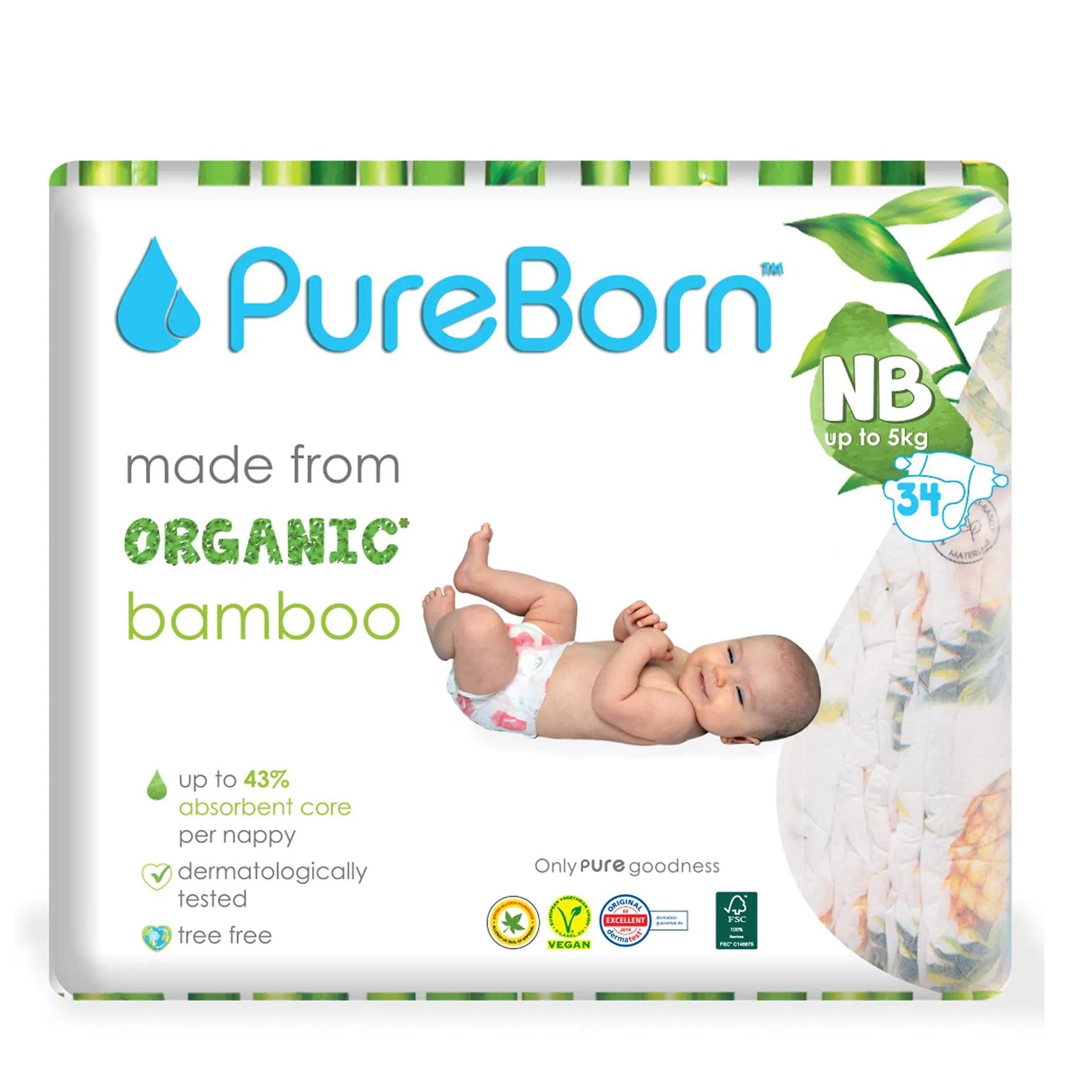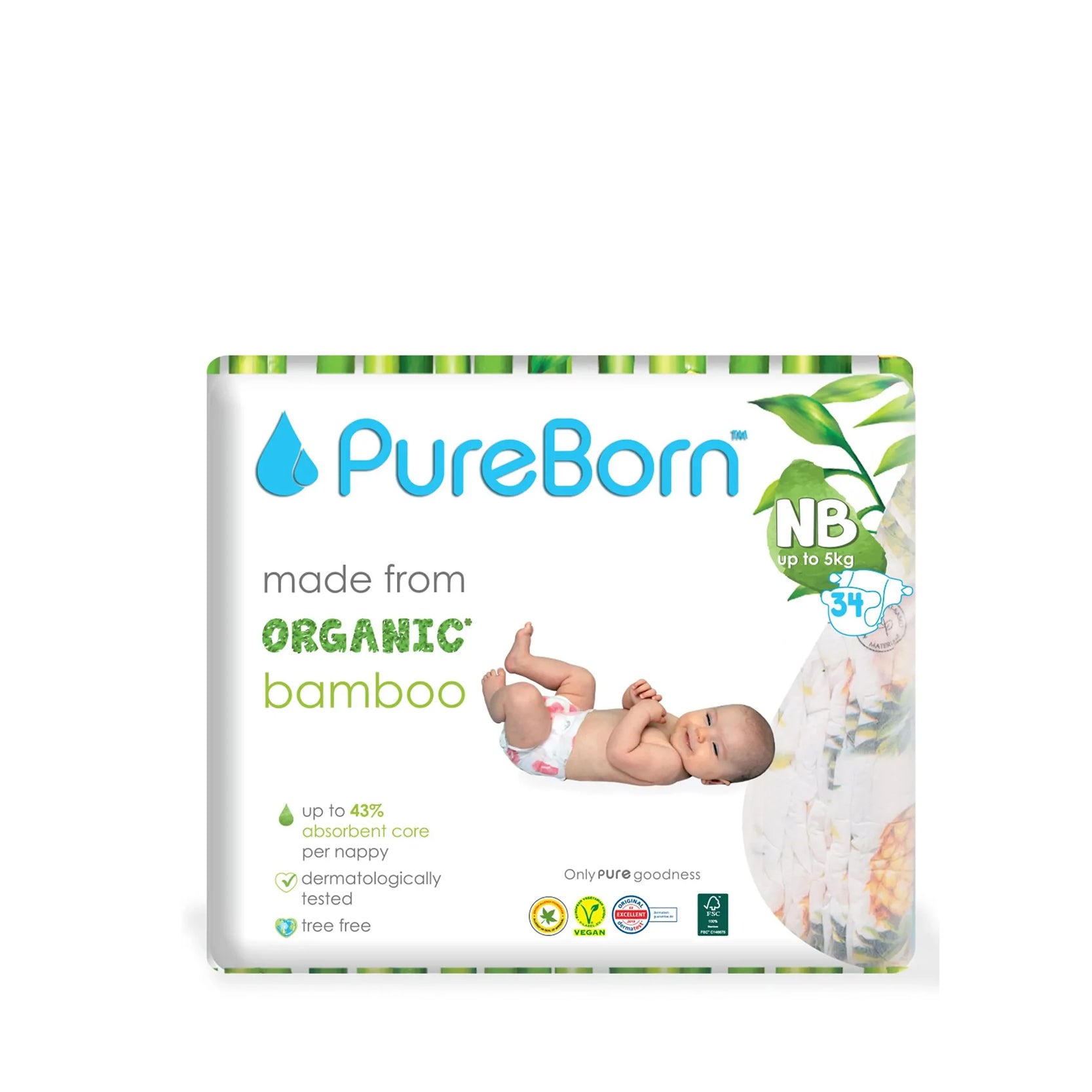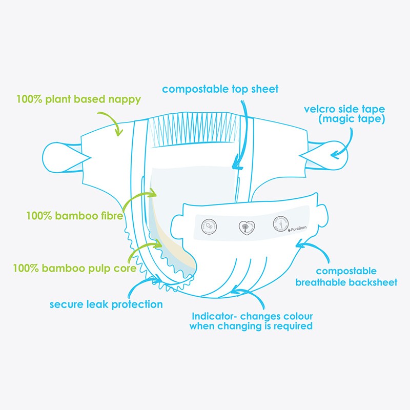 Pure Born’s bamboo nappies are dermatologically tested and carefully formulated to protect the environment and children’s sensitive skin.