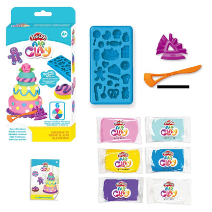 This Play-Doh Air Clay Sweets set is the perfect Play-Doh set for children that love to pretend they are working in the kitchen. It comes with six different colours of Play-Doh Air Clay that they can use to make all kinds of awesome creations. One of the best things about this set is that it actually comes with a Play-Doh mould. This mould lets them make Play-Doh sweet treats such as gingerbread men, cookies, candy canes, chocolate, candy, and much more, this mould is stacked with different things for them to make.
