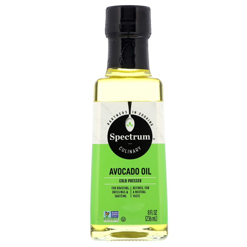 Spectrum® Refined Avocado Oil cold-pressed oil is a wonderful source of good-for-you monounsaturated fats, and is a delicious choice over a salad of organic baby greens and avocado, in grilled polenta, or in chutney and avocado dips. Also a rich, hydrating oil for skincare and massage.