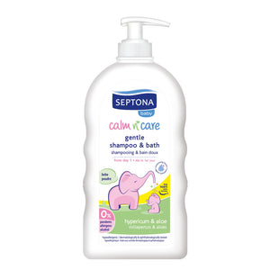 SEPTONA calm n' care gentle shampoo & bath with hypericum and aloe, is ideal for the daily care of the delicate infant skin, from day 1. Its pure formula with natural moisturising factors, gently cleanses without drying your baby's hair and skin, while leaving a wonderful baby powder fragrance! Does not cause tears. Natural pH 5.5. Available also in 500ml bottle.