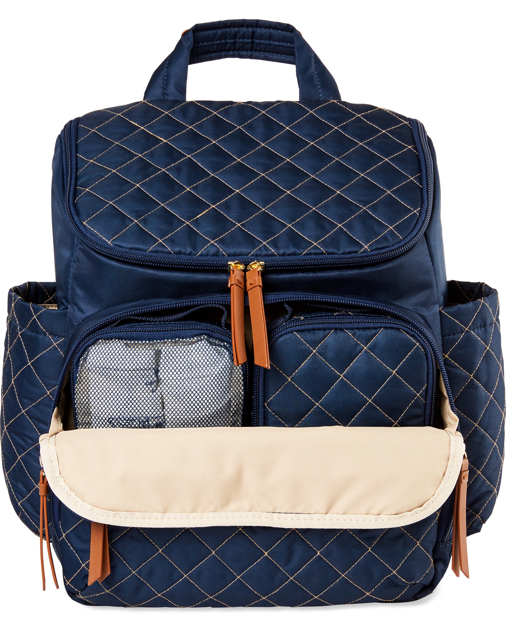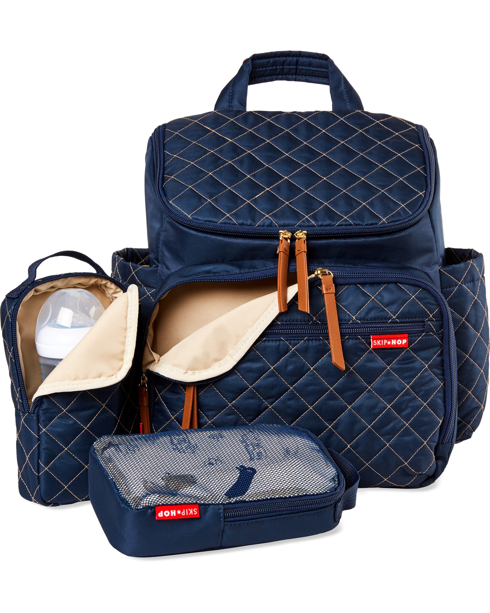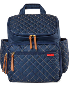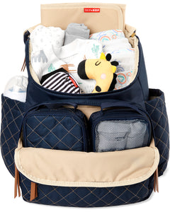 Skip Hop’s lightweight, quilted backpack offers hands-free ease and special packing cubes for baby's gear. The spacious interior fits everything from snacks to spare outfits and the extra wide opening makes it easy to find essentials in a pinch.