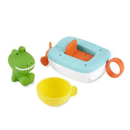 Ready for boatloads of tub time fun, just pull the string and set sail with Clark Croc. Our action-packed bath toy includes a wind-up airboat, a detachable fan that doubles as a water strainer, plus a cute crocodile squirtie. Little ones will love to make a splash while learning cause & effect, hand/eye coordination and more during tub time.