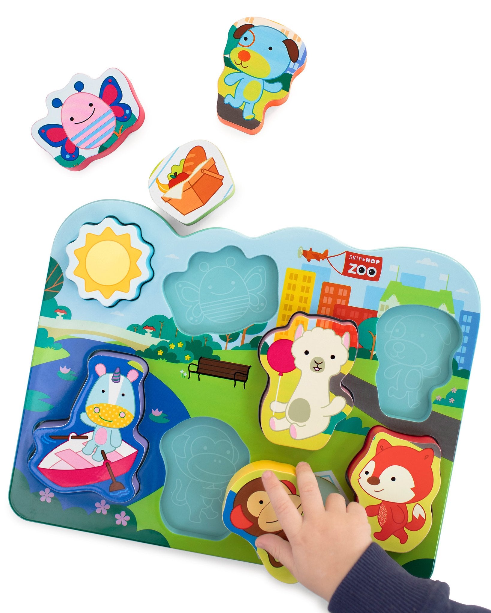 Picnics, boating, running! Little ones will love to piece together a fun-filled outdoor adventure with cute and colorful ZOO® friends. Eight chunky pieces are easy for little hands to grab—plus they stand on their own for pretend play.