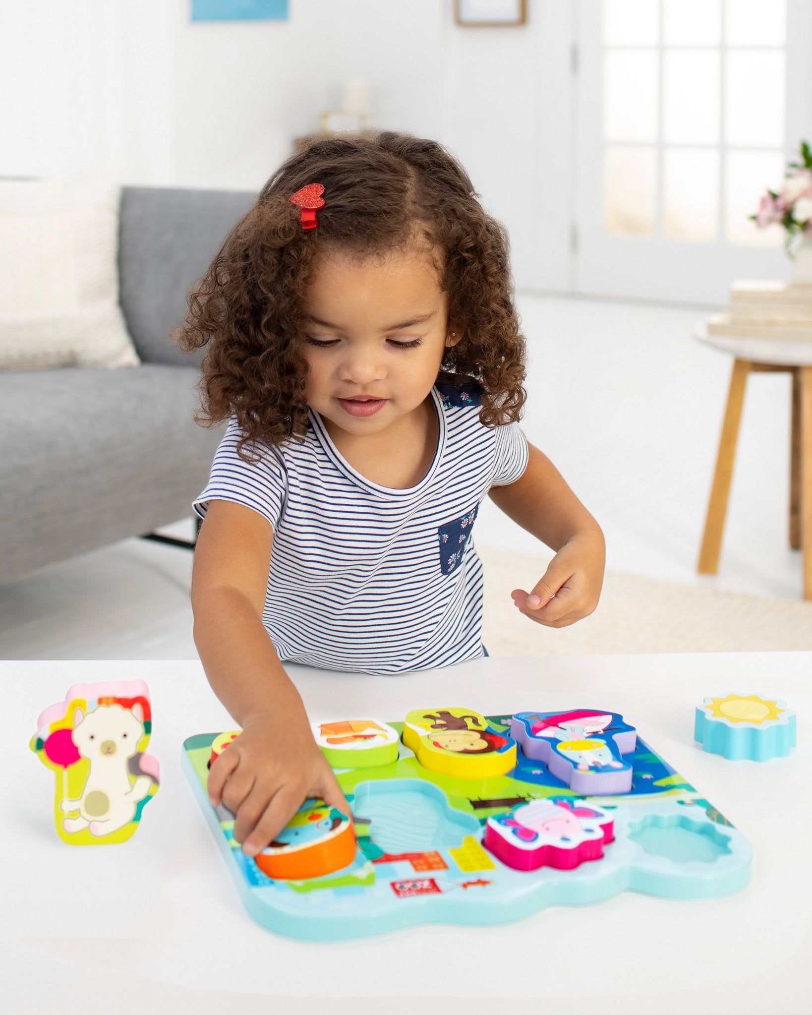 - Chunky pieces are easy to grab