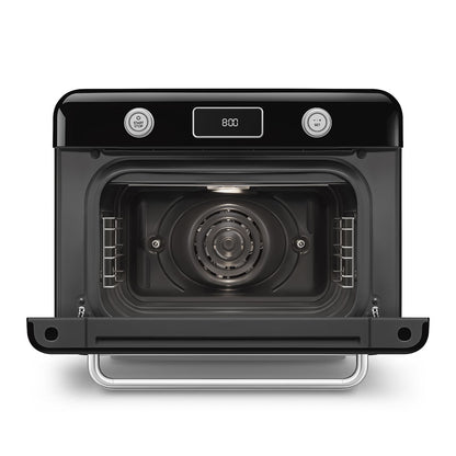No. of cooking functions:10 Display technology:LCD colour Removable Water Container:Yes Temperature control:Electronic Maximum temperature:230 °C Cavity material:Enameled No. of shelves:3 Shelves type:Metal racks N. of fans:1 No. of lights:1 User-replaceable light:Yes Air Fry function:Yes Door opening type:Standard opening Total no. of door glasses:3 Water loading:Tray, manual Tank capacity:0,8 l Lower heating element power:700 W Grill element - power:900 W