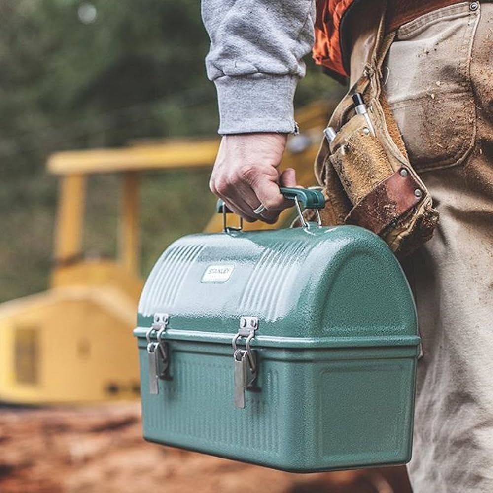 As far as vintage lunch boxes go, this one’s a real classic. Timeless design. Durable construction. And enough room to hold all your food (lunch, snack, second snack and more). There’s even a metal bracket just inside the lid that can keep your full-size Stanley Vacuum Bottle (up to 0.75L) or Stanley Travel Mug secure.