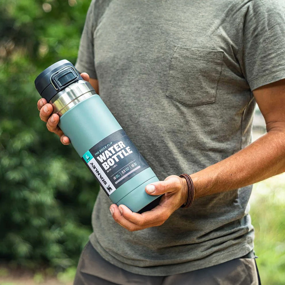 The Stanley Quick-Flip Water Bottle is now available in the bigger 1.06 L size, keeping your drinks cold for 18 hours, 2.5 days when iced. Designed with a push button to flip-open the leakproof lid, the larger mouth opening gives you the flow speed that you need. Thanks to the steel latch that holds the top extra tight, it can be safely packed in any bag without a worry. You'll flip for our Quick Flip water bottles. Choose from a full array of colors and sizes so your drink always suits your taste.