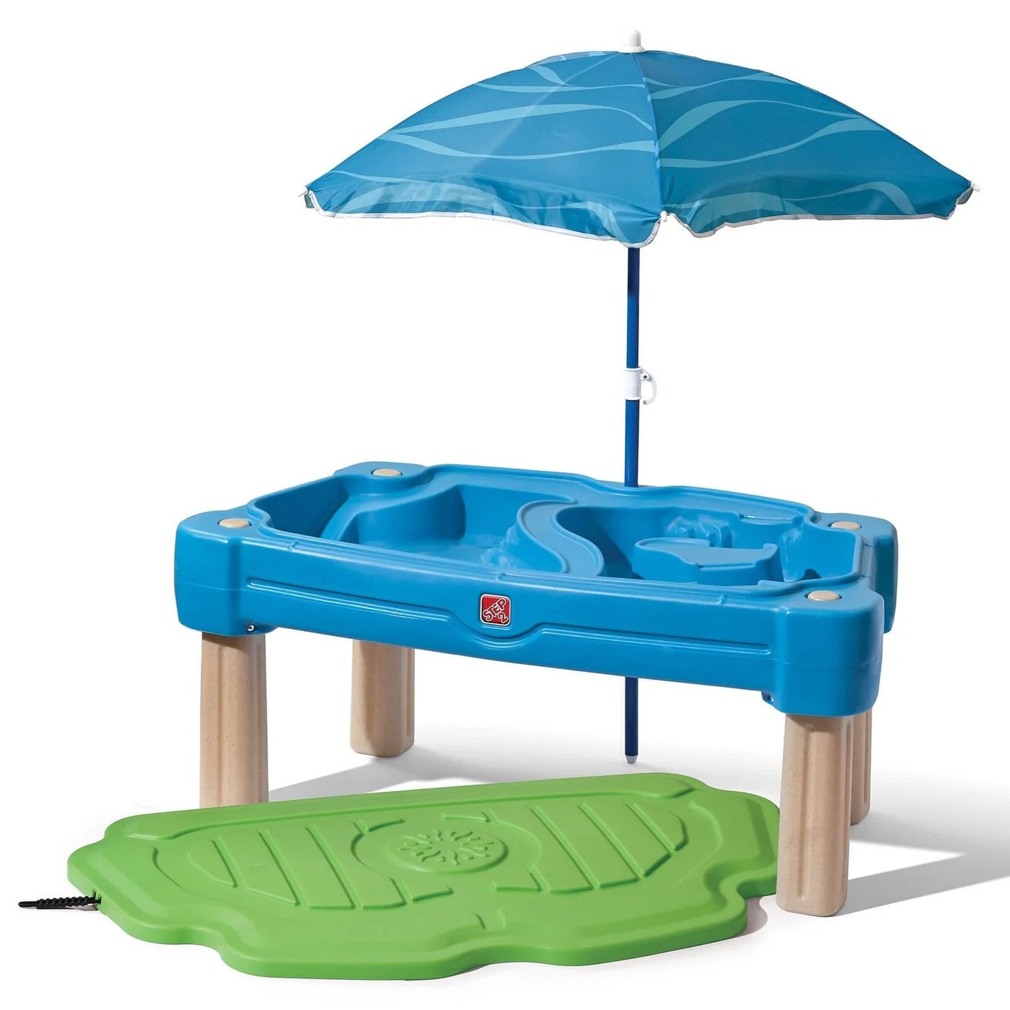 With the Step2 Cascading Cove Sand & Water Table, little ones can make believe they’re sailing the Seven Seas and then arrive on an island to dig for buried treasure! This brightly colored all-in-one activity table provides sensory play fun for all! Little ones can build sand castles on one side and sail toy boats on the other. This kid’s sand and water table is a great outdoor toy that provides children with hours of imaginative play fun. Let the splashing and building fun begin with Step2. Made in USA of US and imported parts. 6-piece accessory set included. Adult assembly required.