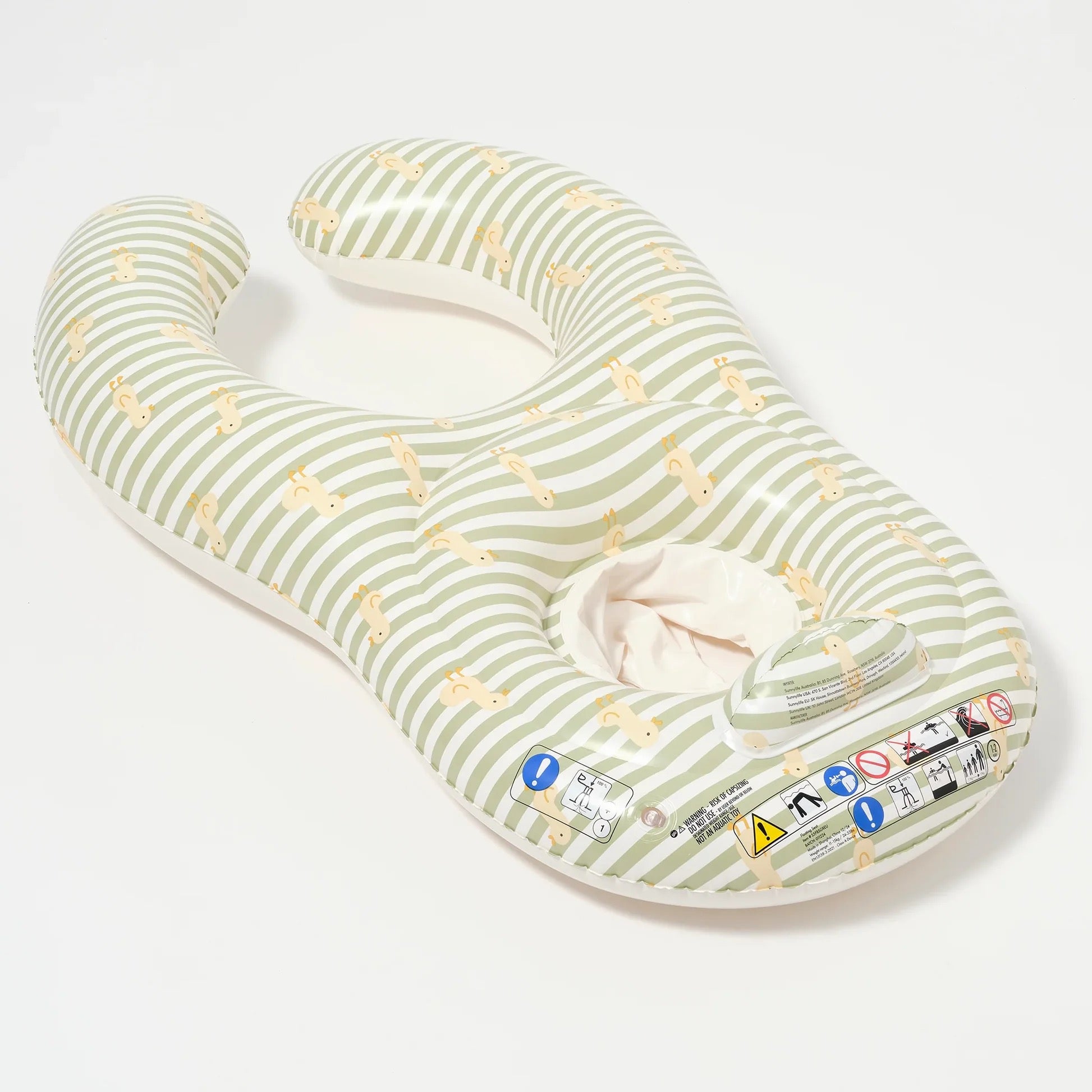 Perfect for little swimmers aged 12-24 months, this charming duck-striped float keeps your baby secure while you stay close by. Designed to support weights from 11kg to 15kg, it features a soft headrest and leg support that cradle your child in comfort. The detachable canopy shields delicate skin from harsh sun exposure, while the durable, phthalate-free PVC construction withstands poolside adventures. A handy repair patch ensures your float stays ready for countless splashing sessions. Always supervise your little one during water play.