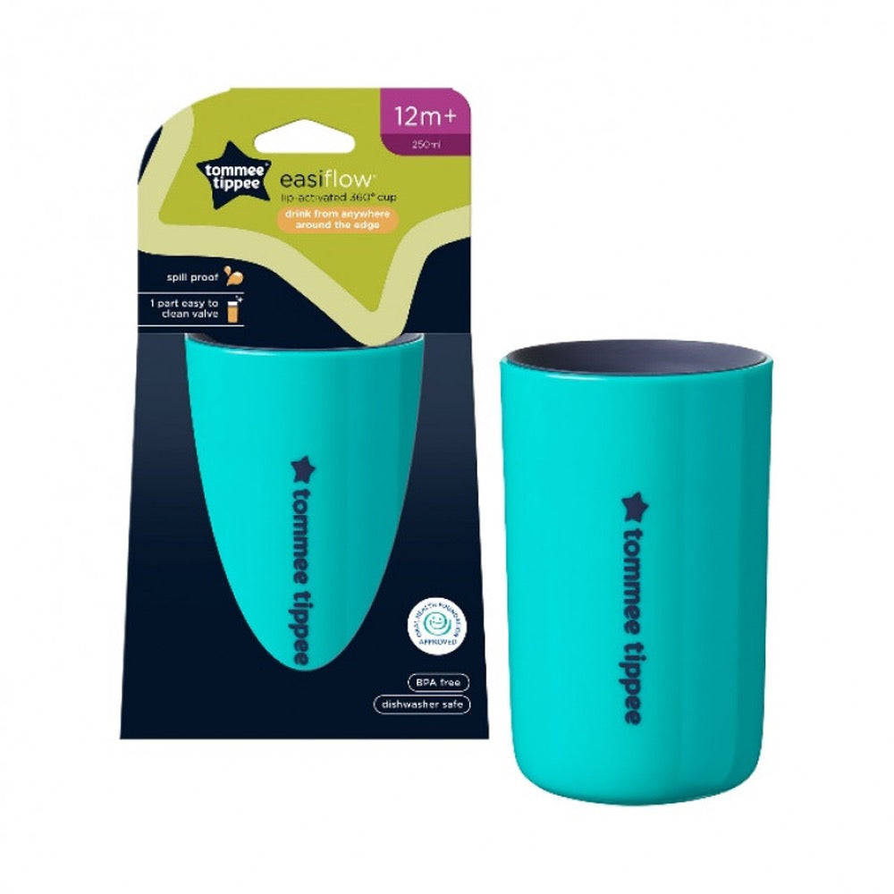 Perfect for training, our Easiflow training cup is the easiest 360° cup to use ever! The cup’s 360° rim makes it easy for your little one to get used to sipping from an open cup, but with less mess. Specially designed for babies 6m+, the cup features a unique lip-activated 1-piece valve that twists securely into the base of the cup. With the touch of a lip anywhere on the rim of the cup, the valve breaks the seal and allows the water to flow so baby can drink with ease. The valve seals automatically between sips keeping the cup fully spill-proof between sips, even when turned upside down.