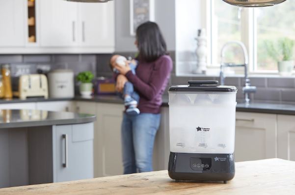 • Sterilises and dries up to 6 bottles in 40 minutes • Kills 99.9% of harmful germs • Contents stay sterile for 24 hours* with the lid closed • HEPA air filter blocks dust and dirt – replacement filter included • Space for 6 bottles plus teats, or a mix of soothers and breast pump accessories • 100% natural – uses steam, not chemicals *When the sterilising cycle is finished either remove bottles and accessories for use straightaway or leave the lid closed and the contents will remain sterile for up to 24 hours. Product Description The less time you spend cleaning and preparing bottles the better. Sterilise and dry up to 6 bottles in 40 minutes with the Tommee Tippee advanced electric steriliser and dryer. Using only natural steam to envelope every surface, this electric steam steriliser kills 99% of germs that may linger in bottles, teats, breast pumps and other baby feeding accessories. The quick and convenient sterilising and drying cycle means you are never without a clean, dry sterilised bottle for your baby.