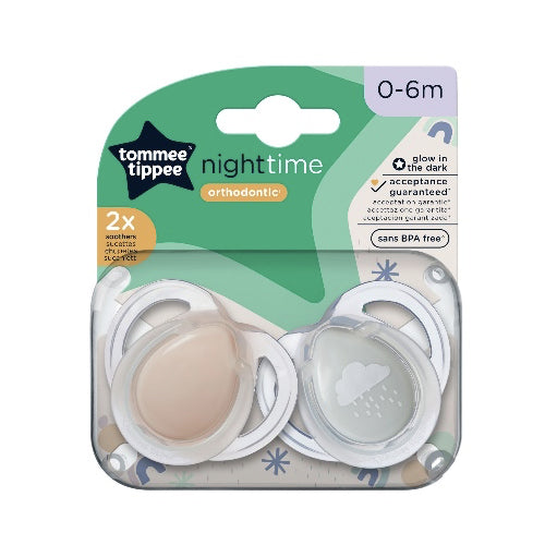 • Symmetrical design: The Tommee Tippee night time pacifiers feature a symmetrical silicone nipple and with no ‘wrong’ side up, it will always be placed correctly in baby’s mouth