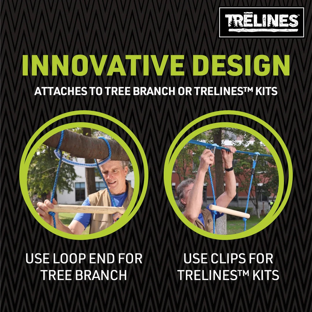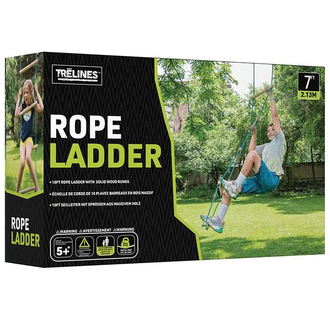 TOP SELLING LINE ACCESSORY: Kids love to play on Rope Ladders as they can be challenged to climb, and swing as it moves back and forth. This 7 ft Rope Ladder is made of Premium Wood Dowels which are non slip and durable nylon rope. Attach to tree branch or hang from Trelines Nina and Swingset lines.
