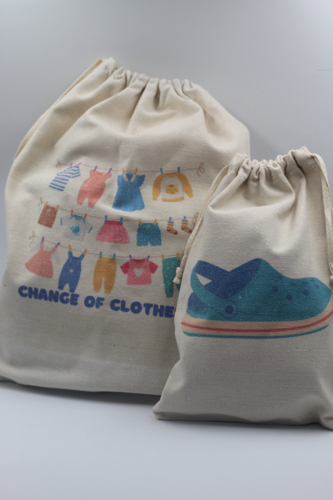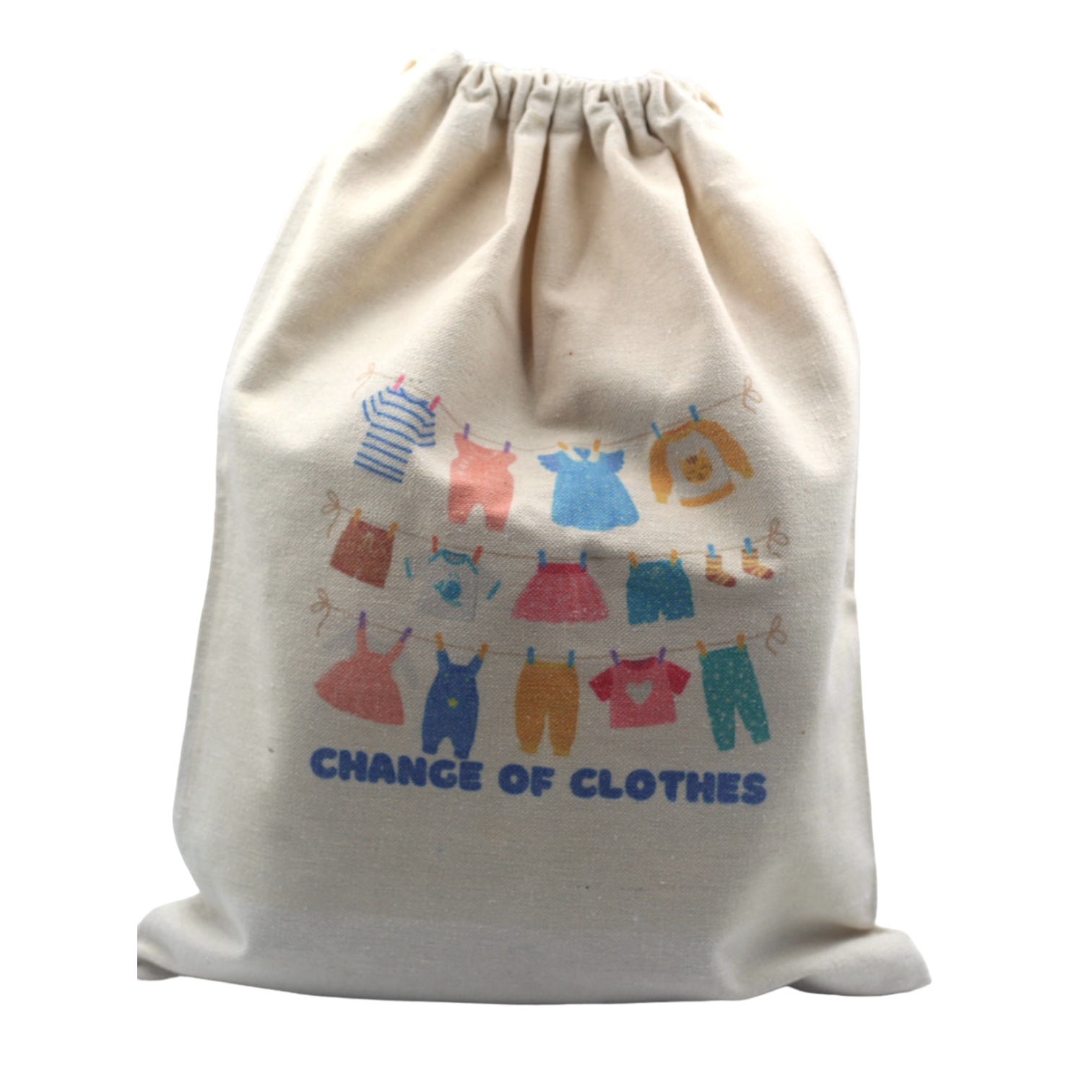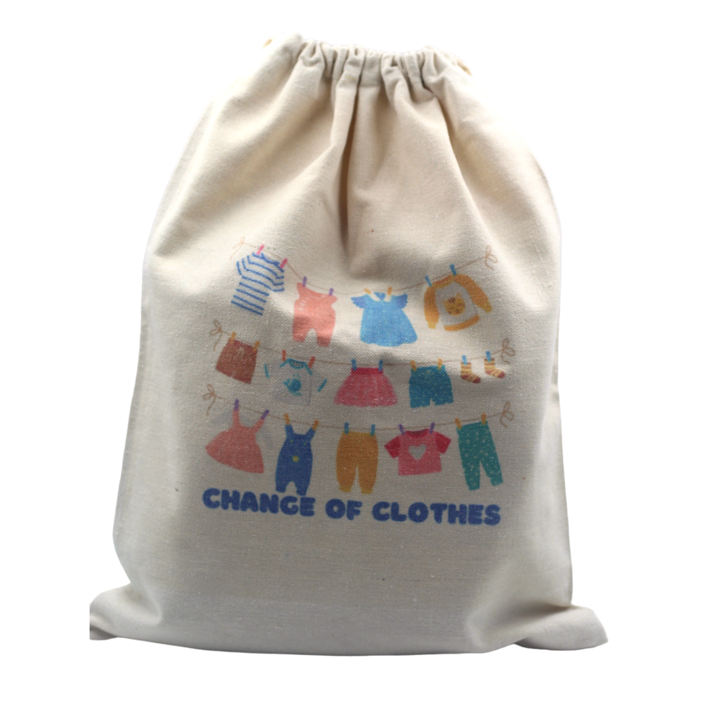 a fun and handy drawstring bag featuring Change of Clothes which you can use for after school activities or travel.