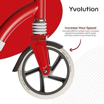 Experience the perfect combination of style, comfort, and functionality with the Yvolution S200 Kick Scooter. Designed for modern riders, this quality 2-wheel scooter offers a smooth and secure ride, making it ideal for commuting or casual cruising. Its minimal tolerance fold structure ensures stability without compromising portability, allowing riders to enjoy both safety and convenience. With its innovative folding mechanism, the S200 features a free-standing “half-fold” mode for quick stops and a full folding option for easy storage. The front suspension system absorbs bumps, providing a smoother ride on various surfaces. Riders will appreciate the stylish wood-effect grip tape and handgrips, which add a unique touch while enhancing comfort and control. The adjustable height handlebar caters to different riders, and the stowable grips make transportation a breeze. Complete with a rear footbrake, the Yvolution S200 ensures responsive stopping power whenever you need it.