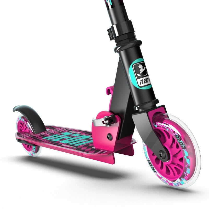 Neon Apex is a sharp looking and lightweight scooter that will push your riding to the edge. Super-grip adjustable handlebar and rear brake make this one of our most versatile scooters for everyday use. Simply fold the handlebars and store it ready for the next day!